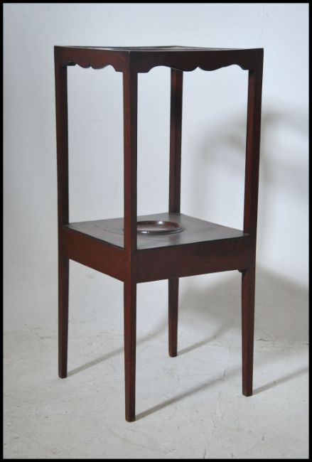 A 19th century Georgian mahogany washstand of simple form having squared legs with single drawers and bowl recesses atop. Measures 78cm high x 33cm wide and 33cm deep.