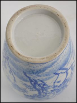 A believed 19th century Chinese vase of baluster form with blue and white decoration of flowers and birds, unmarked to the base in the Kangxi manner. Measures 20cms high.