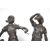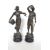 A pair of hollow cast bronze figures, each being raised on ebonised socle plinth bases, one of a farmer with spade and jug, the other with a lady having rake and basket of fruit. Measures 39cm high.