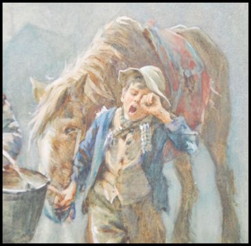 An early 20th century framed and glazed watercolour painting of a mother and son leading a horse through a field signed to corner Harold Copping (1863-1932) British.