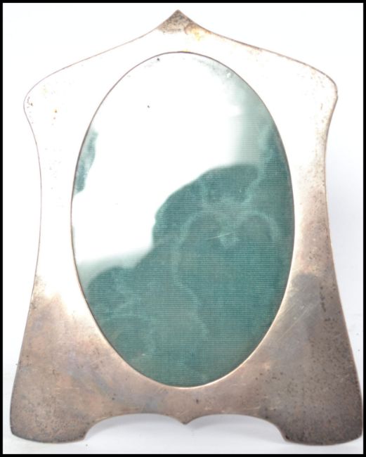 A silver hallmarked photograph frame in the Arts & Crafts manner by Deakin & Francis of Bimingham, date letter k for 1909. The framed with leather easel back.  Total weight 204.1g