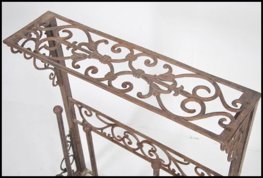 A 20th century cast metal Coalbrookedale style boot scrape / boot holder having storage for four pairs of Wellingtons.