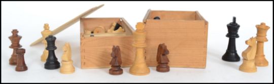 A collection of boxed chess pieces dating to the 20th century being of well carved construction