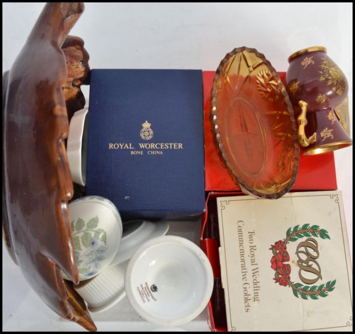 A collection of ceramics to include a fat lava style fruit bowl in the form of a leaf various Wedgwood Clementine items etc. Please see images. Measures 28cms wide.