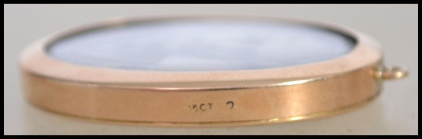 An early 20th century double sided 15ct gold twin window pendant locket of oval form. Total weight 7.6g / approx 3.5cms tall