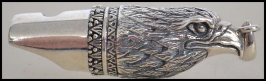 Hunting Interest. A silver gentleman's whistle in the form of a bird of prey / kestrel / eagle. Weighs 12.4 grams and measures 5cms long.