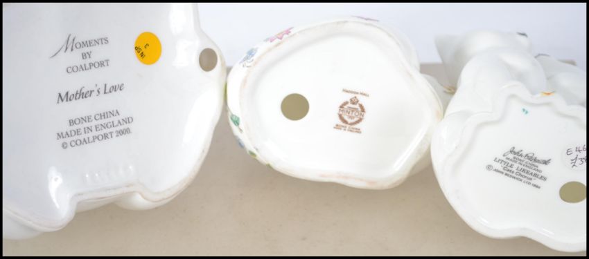 A Minton cat in a seated position in the Haddon Hall pattern along with a Coalport Mother Love cat group and a John Beswick Cats Chorus.