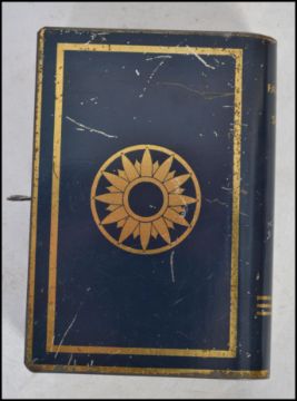 A vintage Jack and the Beanstalk money tin in the form of a book with lock and key to side.