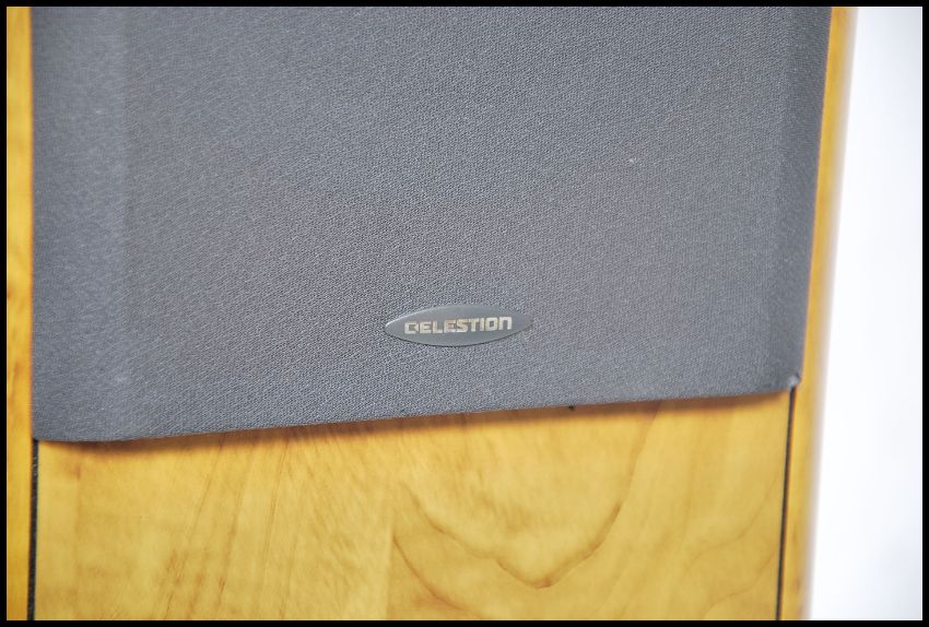 A pair of Celestion F20 10-100w pedestal speakers in walnut finish and of tall form ( see illustrations) Similar pair in lot 408