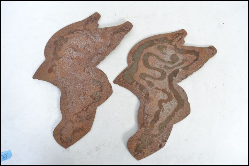 A pair of contemporary tin plate shop  advertising point of sales signs for Super Dry Premium Hide Boot & Shoe Company.