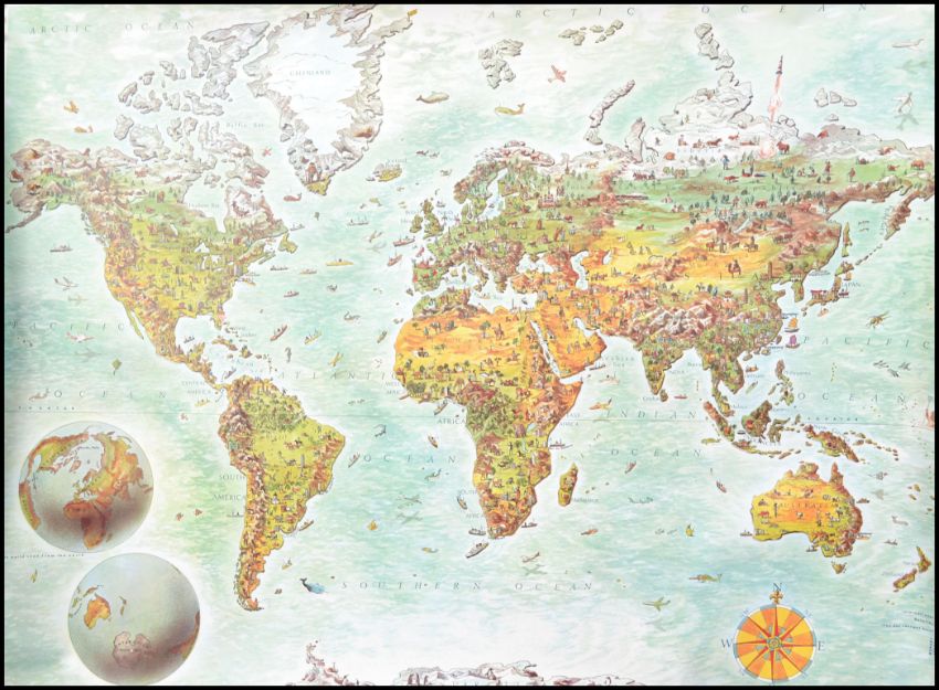 A large vintage retro 20th century Map of the world school educational poster dating to 1966,