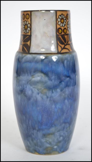 A late 19th / early 20th century Royal Doulton stoneware salt glazed tall baluster vase signed in monogram by Bessie Newbery. Bessie Newbery is listed as being a Junior Assistant at Doulton's Lambeth factory in 1882, and continued to work there for 42 years until 1924. Impressed marks to the base.