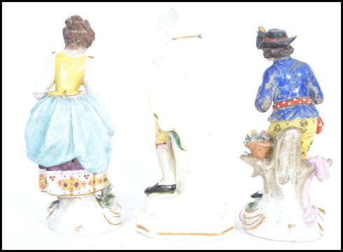 A collection of 3 figurines to include a Staffordshire figurine and 2 others with gold anchor marks in the manner of Chelsea