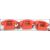A group of three vintage retro 20th century industrial ring dial telephones in red with numerals to front and Arabic numerals underneath.