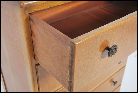 A 1930's Art Deco style oak upright pedestal chest of drawers. The chest having central bank of 6 drawers with the original handles. Measures 134cm x 76cm x 45cm