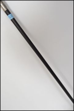 A vintage hallmarked silver rosewood walking stick cane having a silver collar shaped bone handle and an ebonised finish. Hallmarks rubbed makers mark HP&S.