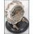 A 20th century Russian 17 jewel movement mantel clock, having faceted circular surround to Arabic numeral dial inscribed Majak made in USSR to verso, supported on chrome arms and circular ebonised plinth base.