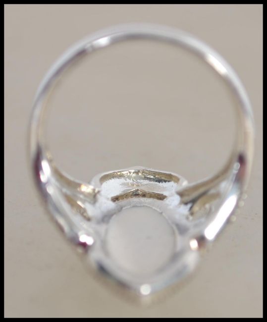 A large silver and opal ladies dress ring of contemporary form being complete in the original presentation case