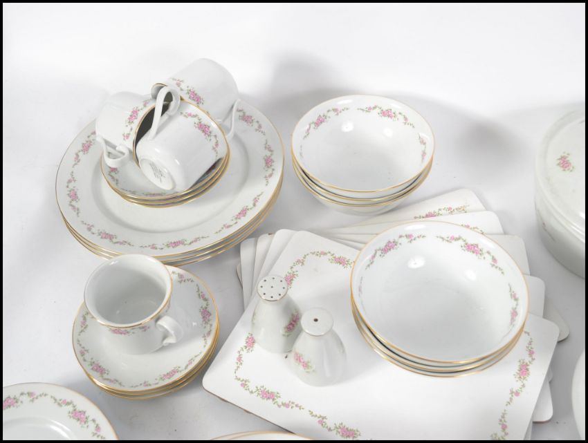 A large chintzy pattern Bone China extensive floral tea and dinner service consisting of trio's plates tureens etc.