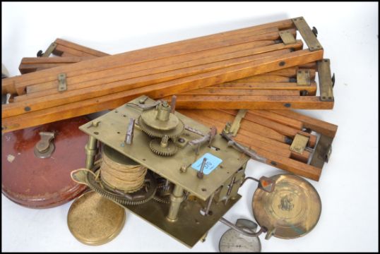 A good mixed lot to include a vintage clock movement, various tools, a telescopic drinking cup in case, an art deco figurine on plinth base, pocket meters etc. Please see images.
