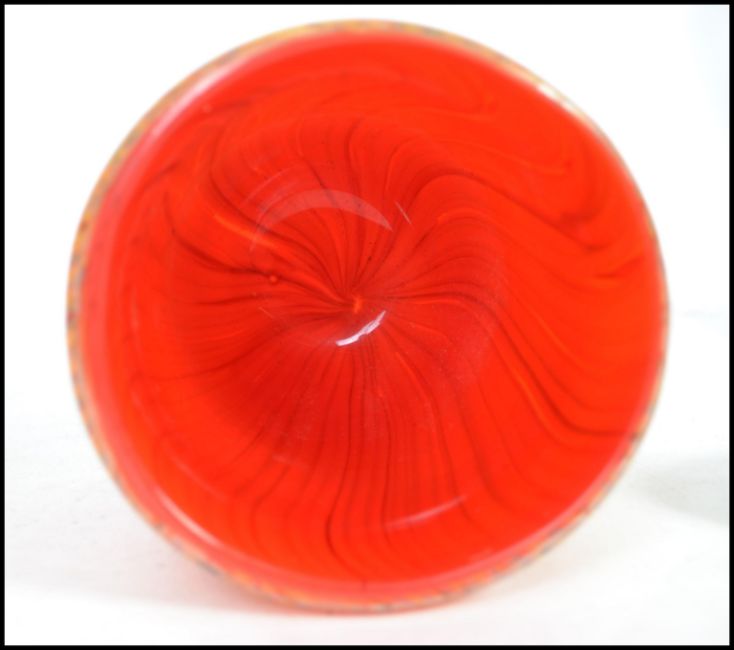 An Italian mid century Venini type studio art glass vase of tapering cylindrical form having swirl tutti frutti type decoration