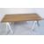 A post modernist revival large refectory trestle dining table. Raised on tolix style white metal trestles having a stunning planked stripped oak table top of rectangular form. Measures 80cm high x 160cm wide x 90cm deep.