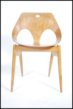 A mid century Jason chair by Carl Jacobs for Kandya. The  plywood chair  having shaped bentwood tub frame with pierced back and raised on tapering legs