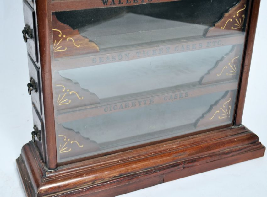 A stunning late 19th / early 20th century shop cabinet with glass facia having multiple sliding drawers that reveal at both sides. The fronts with gilded notation to the arcades.Measures 72cm high x 54cm wide x 17cm deep.