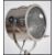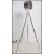 An Andrew Martin polished steel tripod lamp. The large Industrial style theatre spot lamp of spherical form being raised on an an adjustable tripod base ( see illustrations )