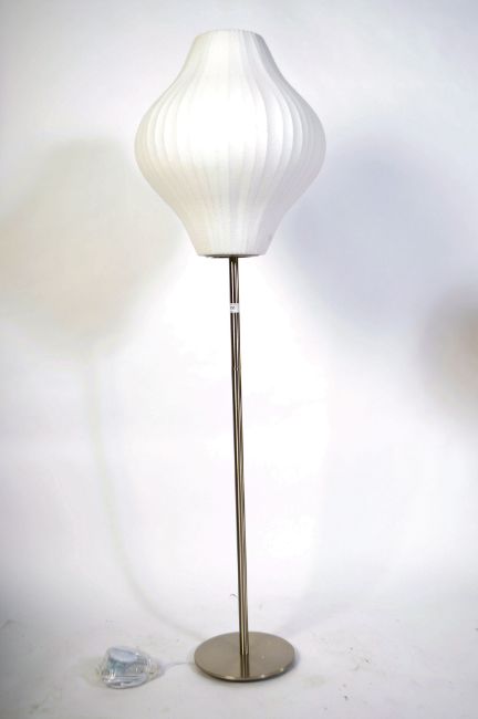 After George Nelson. A floor standing Lotus lamp - standard lamp taken from the 1952 design originally made by Herman Miller. This on a lotus chrome stamp with conical shade. Further matching example in lot  166. Measures 245cm high.