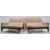 A 1960's mid century Danish teak modular ' twin ' sofa settee. Believed to be originally from Heals of London, the teak wood frames having raised angular show wood frames being recently upholstered to a high standard with beige French linen. The twin units uniting or separate to allow for coffee / occasional table etc.