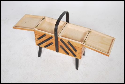 A good 1950's metamorphic sewing box ebonised handle and feet, sectional body above