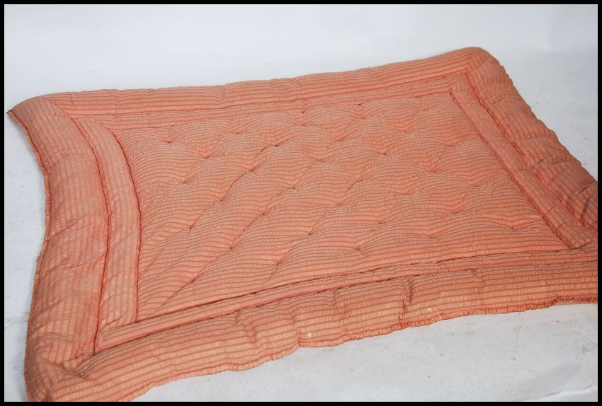 A retro mid century vintage Eiderdown by Bansun having stiiched paternation to the lilac/red coloured fabric