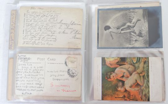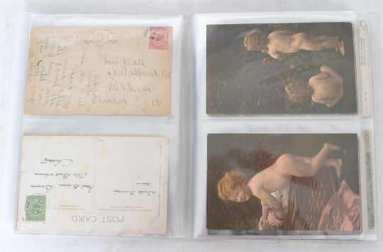 RISQUÉ Vintage postcard collection featuring views of bare bottomed children.Real photo backsides, artist drawn, comic etc. Being smacked, bathed or on the potty. Sixty six cards in album.
