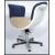 A retro 1980's large barbers gas operated swivel - rise and fall chair being raised on a circular base with foot pump having two tone open backed vinyl upholstered seat. Measures 85cm x 85cm x 50cm