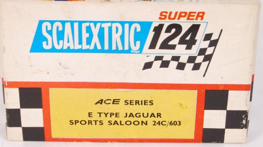 A rare vintage Scalextric Super 124 ' Super Powered Model Racing Car ' BOX ONLY. For the Ace Series E Type Jaguar Sports Saloon 24C/603. Generally very good condition. Minor creasing to rear panel, otherwise near mint.