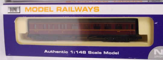 A collection of 5x Dapol N gauge railway trainset rolling stock items. All carriages and wagons. Comprising of; NB036C, NB036B, NC029B, NC025 and NC014. All appear unused within the original boxes.