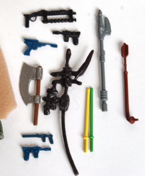 A good collection of assorted vintage Star Wars action figures by Kenner / Palitoy. Condition in generally very good to mint. Many with clothing / weapons (presumed original, but unchecked). To include; Amanaman (arm glued), a baggie C3PO with backpack (opened), Cloud Car Pilot, Ewoks, Han Solo, Luke, Bib Fortuna and many others. Good selection.
