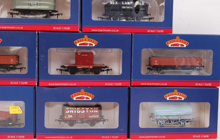 A collection of 12x unused Bachmann Branch Line 00 gauge railway trainset wagons. All boxed. To include; 33-080A, 38-600, 38-700, 37-960, 38-602, 37-113, and others. All appear unused.