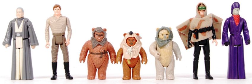 A collection of 7x original Kenner made Star Wars action figures - all from the Last 17 of the series. Comprising of; Imperial Dignitary, Anakin Skywalker, Romba, Paploo, Lumat, Han Solo and Luke Skywalker in Battle Poncho.