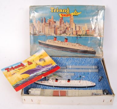 An original vintage Triang Minic Ships Lines Bros. set M891 RMS Queen Elizabeth Presentation Set. Appears complete (unchecked) with some contents bagged. Within the original presentation box. With catalogue.