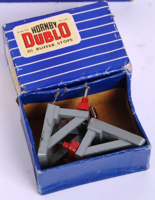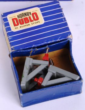 A collection of vintage Hornby Dublo 00 gauge trackside items, all boxed. To include; Buffers, Signals, D1 Footbridge, 32198 TPO Lineside Apparatus, D1 Level Crossing, D1 Turntable and other items.