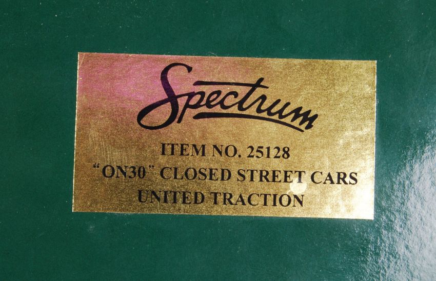 A Bachmann Spectrum series 00 / H0 gauge railway trainset carriage 25128 ' Closed Street Car United Traction '. Appears mint, within the original presentation box, with paperwork.