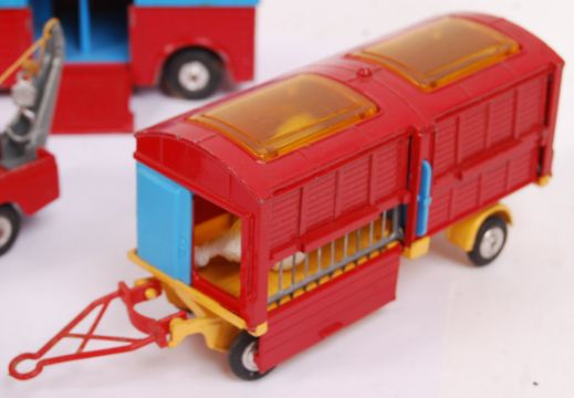 A collection of assorted vintage loose Corgi Chipperfields diecast models - all unboxed, to include; Land Rover, Circus Animal Cage, Articulated Horse Box, Crane and others.