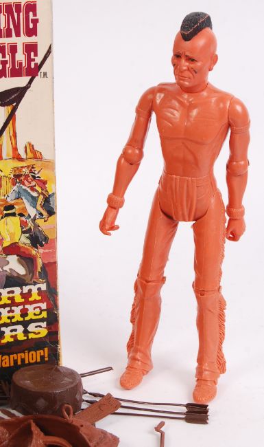 A rare original vintage Marx Toys Fort Apache Fighters action figure of ' Fighting Eagle .' Appears complete, within the original box. With instructions.