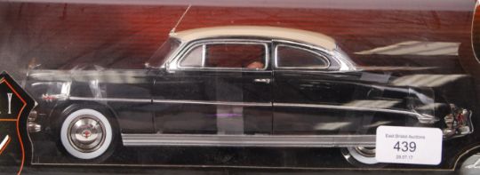 A good Highway 61 Diecast Metal made model SKU 50130 1952 Hudson Hornet Club Coupe. Appears mint, unused, within the original display box.