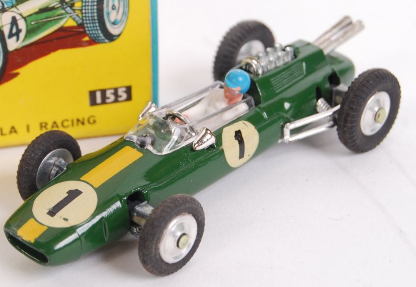 An original vintage Corgi Toys diecast model No. 115 Lotus Climax Formula 1 Racing car. Appears near mint, in a very good original box.