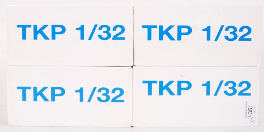 A collection of 4x original contemporary 1/32 scale TKP plastic model slot car kits to include; TK5 Porsche Carrera, TK1 Porsche, TK3 Porsche Carrera & TK7 Porsche 910 LM71. All within their original boxes.