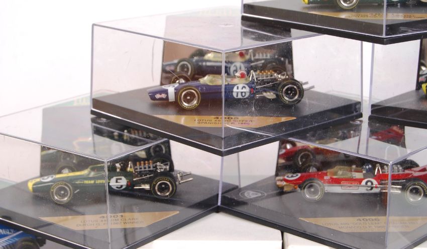A good collection of 21x Heritage Formula One precision 1:43 scale diecast model racing cars. 8x being mint within their original display boxes, the others being within their display boxes AND outer packing boxes (unused). Comprising of model numbers; 4002, 4004, 4003, 4001, 4005, 201, 4006, 210, 235, 241, 237, 236, 204 and others. Some duplicates. All mint.