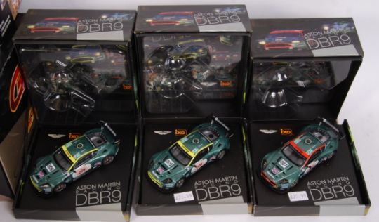 A collection of contemporary precision made diecast model cars to include; 2x Skid Models Mitsubishi Lancer EVO.V, IXO Models Aston Martin Racing DBR9 (3x), Lledo Vintage Rolls Royce Car Collection, 1:18 scale Maisto GT Racing Mercedes CLK-GTR & others. All within their original boxes.